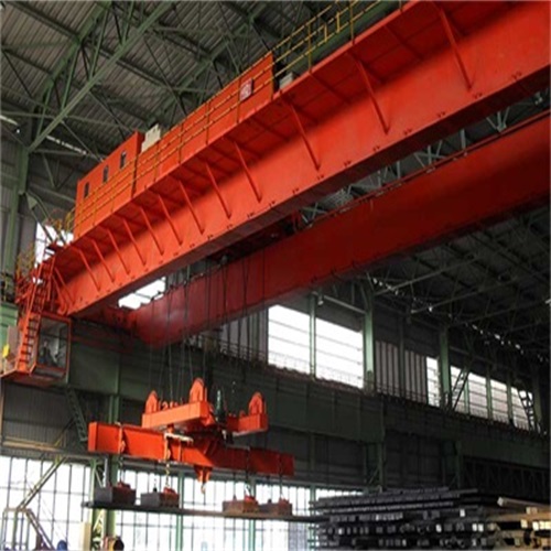 QC型5-15噸電磁橋式起重機帶有可裝卸的電磁盤,特別適用于冶金工廠在室內或露天的固定跨度間較繁重的裝卸及搬運具有磁性的黑色金屬制品與材料。在機械廠、庫房也常用來搬運鋼料、鐵屑等物料。